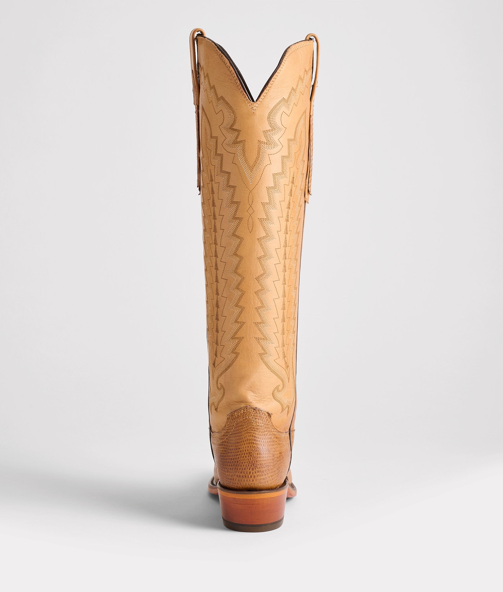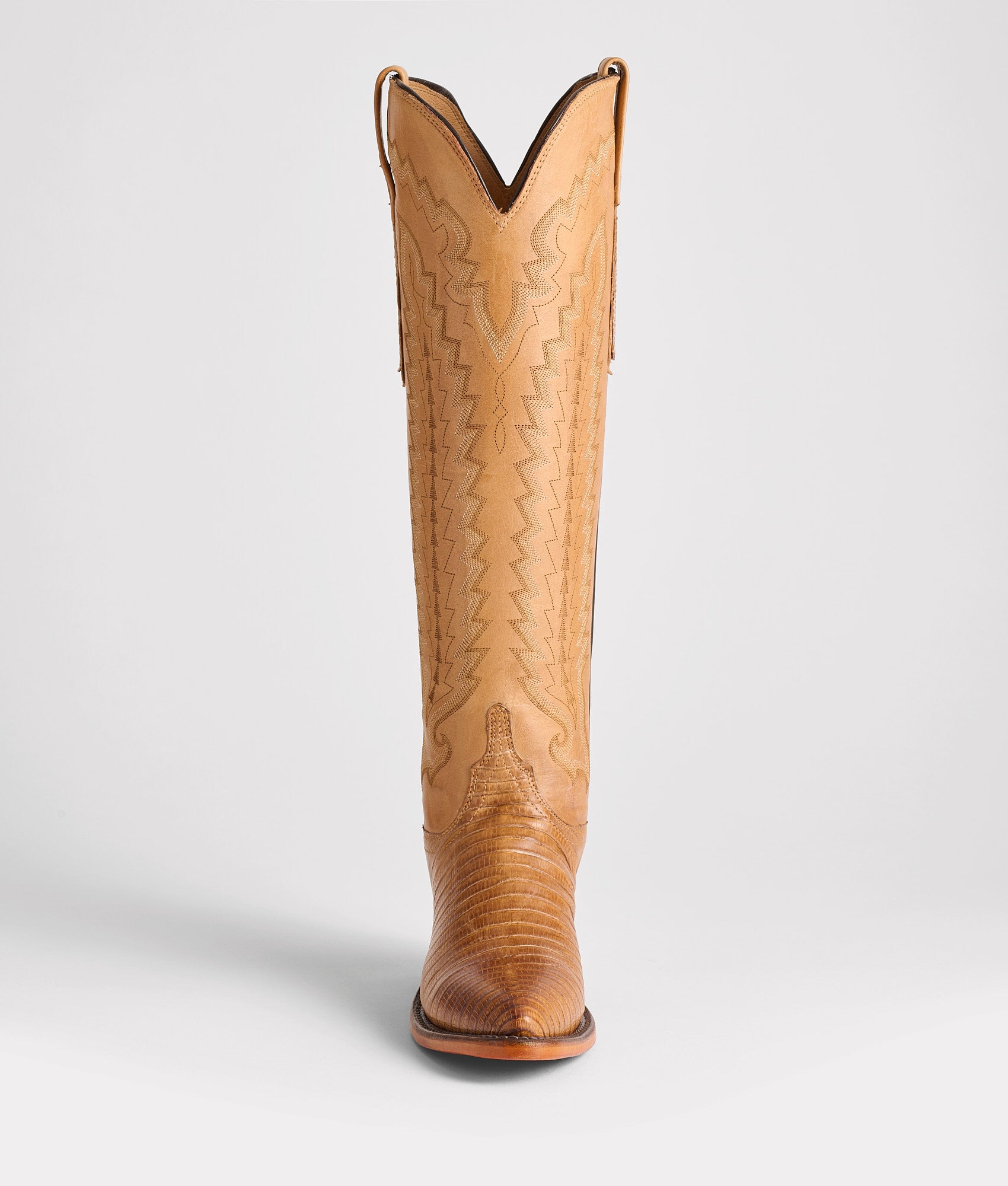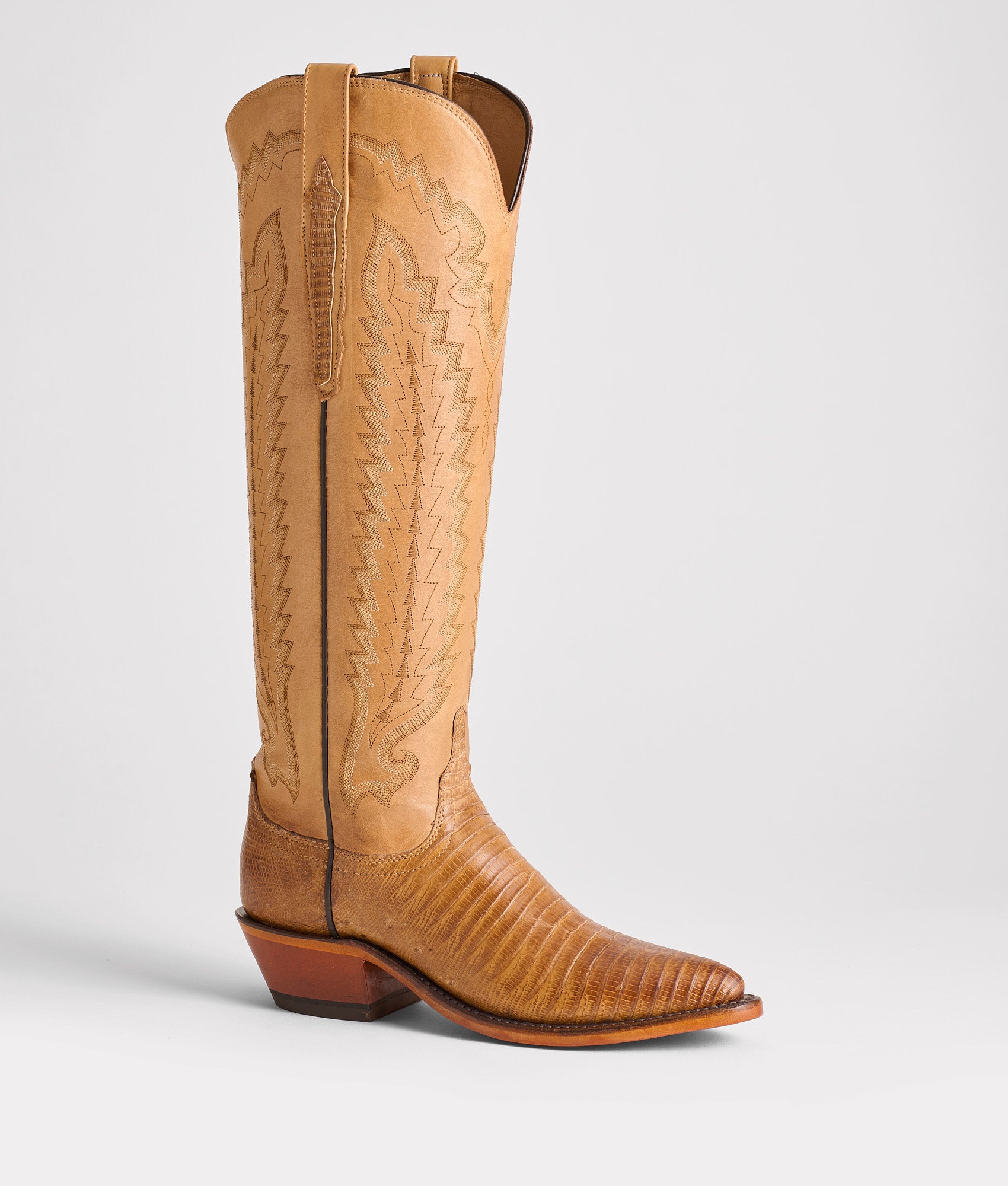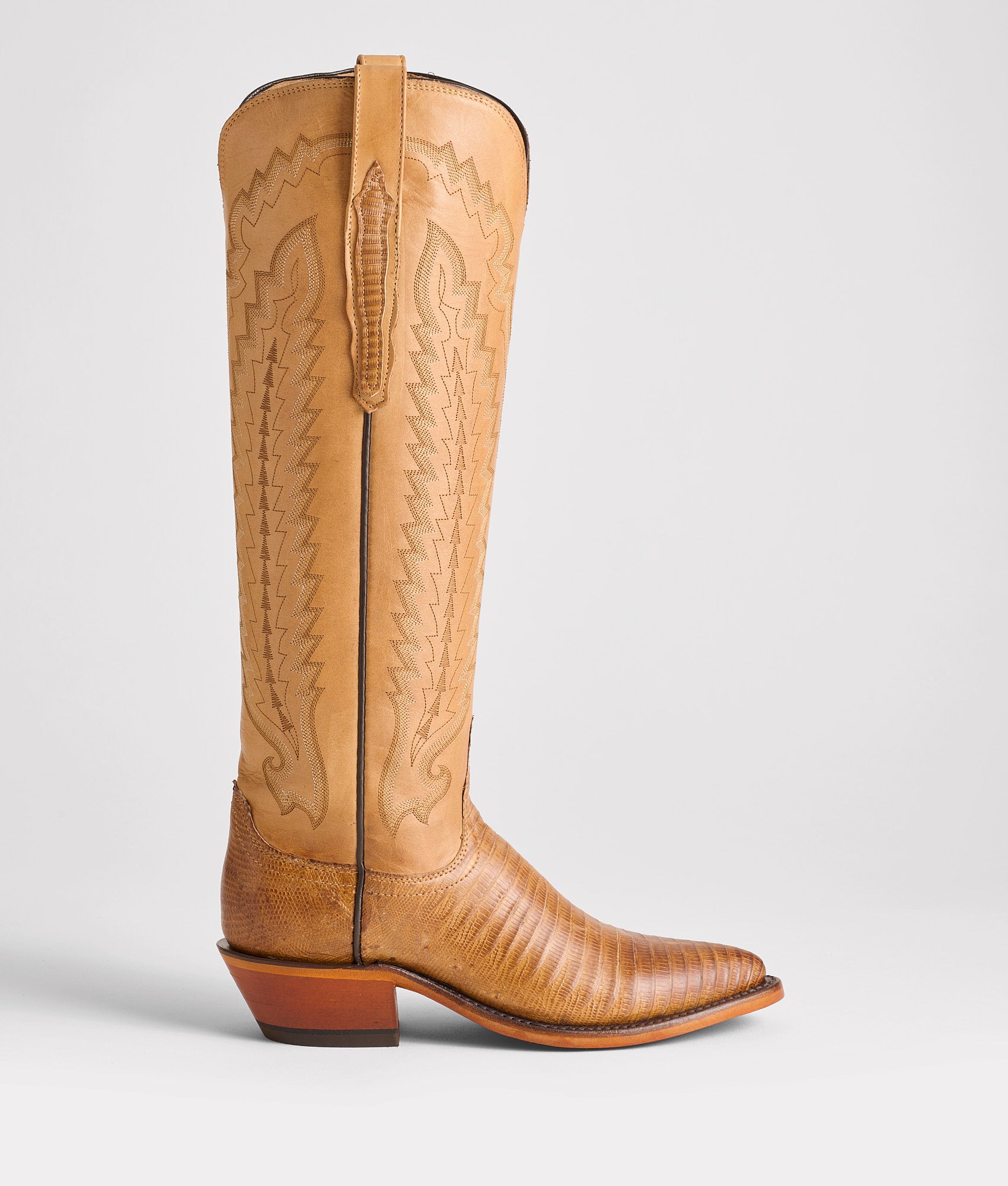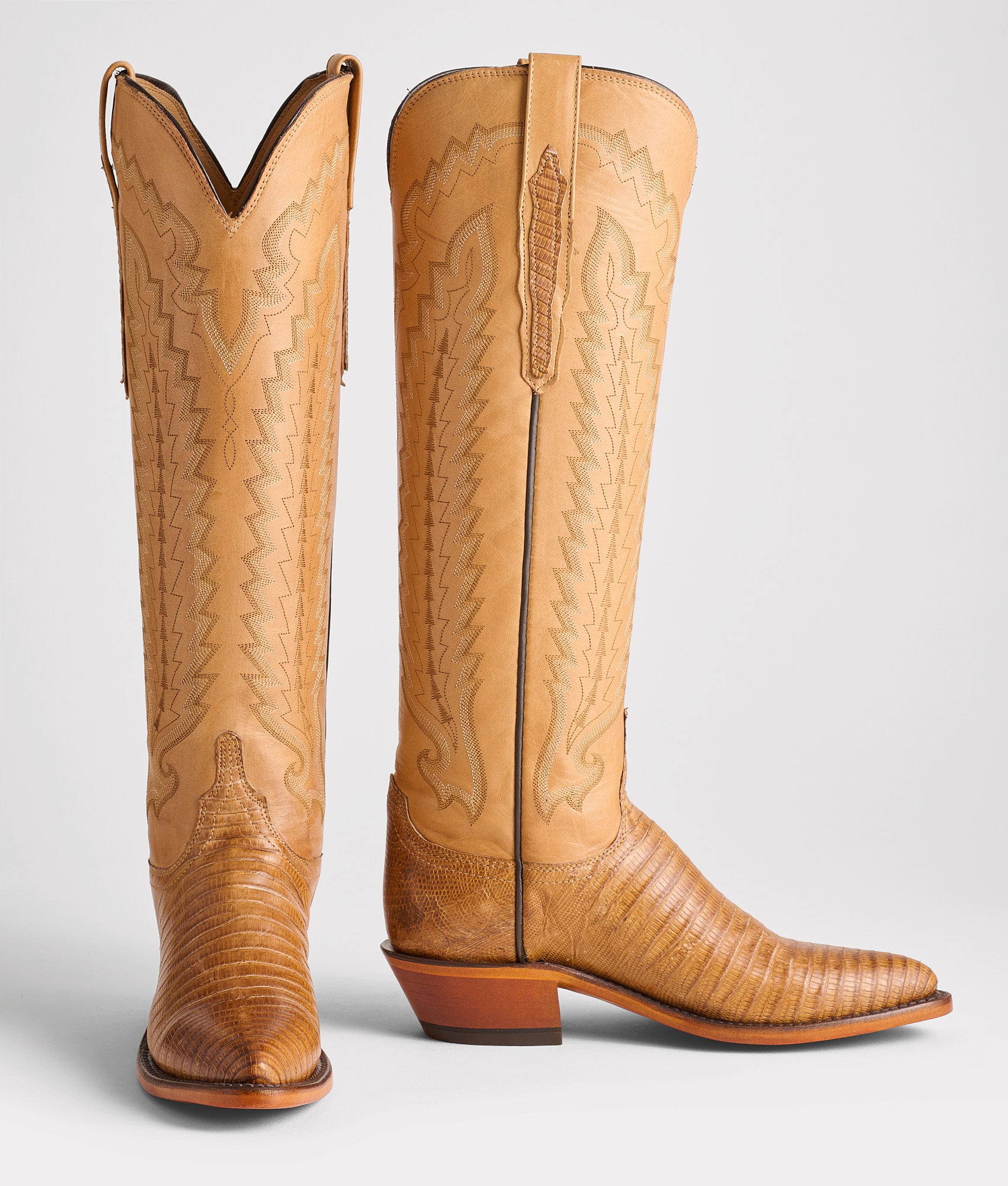 The exotic sister of our bestselling Priscilla, this knee-high beauty is a timeless classic, trendy chic, and an eye-catching wardrobe addition in one gorgeous boot. An instant heirloom made from the finest leathers, Priscilla Exotic elevates the traditional Western woman’s look to a whole new level, giving every cowgirl a burst of confidence with every step. Handmade in Texas.