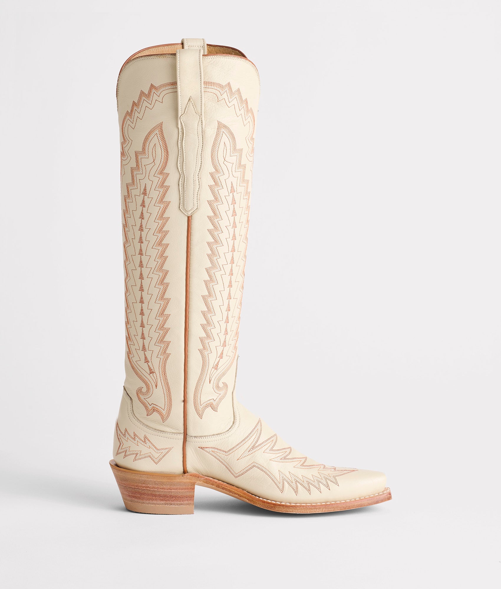 Our No. 1 bestselling boot for women, Priscilla walks an elegant line between timeless classic and cowgirl chic. The vintage-inspired Tioga stitch pattern harks back to yesteryear, but Priscilla is a boot built for today. This knee-skimming, pull-on silhouette handcrafted from supple goat leather deserves the spotlight under dresses and over jeans. Handmade in Texas.