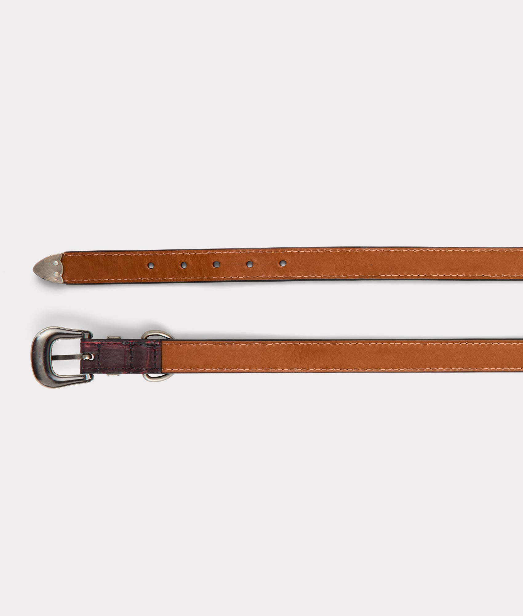 This adjustable dog collar is crafted from premium Caiman hide for an exotic Lucchese look and feel. Available in our signature black cherry color, this features a 3-piece antiqued nickel buckle, adding a refined and luxurious touch. Go to the nearest Lucchese Store to get a custom embossing with your pup's name.