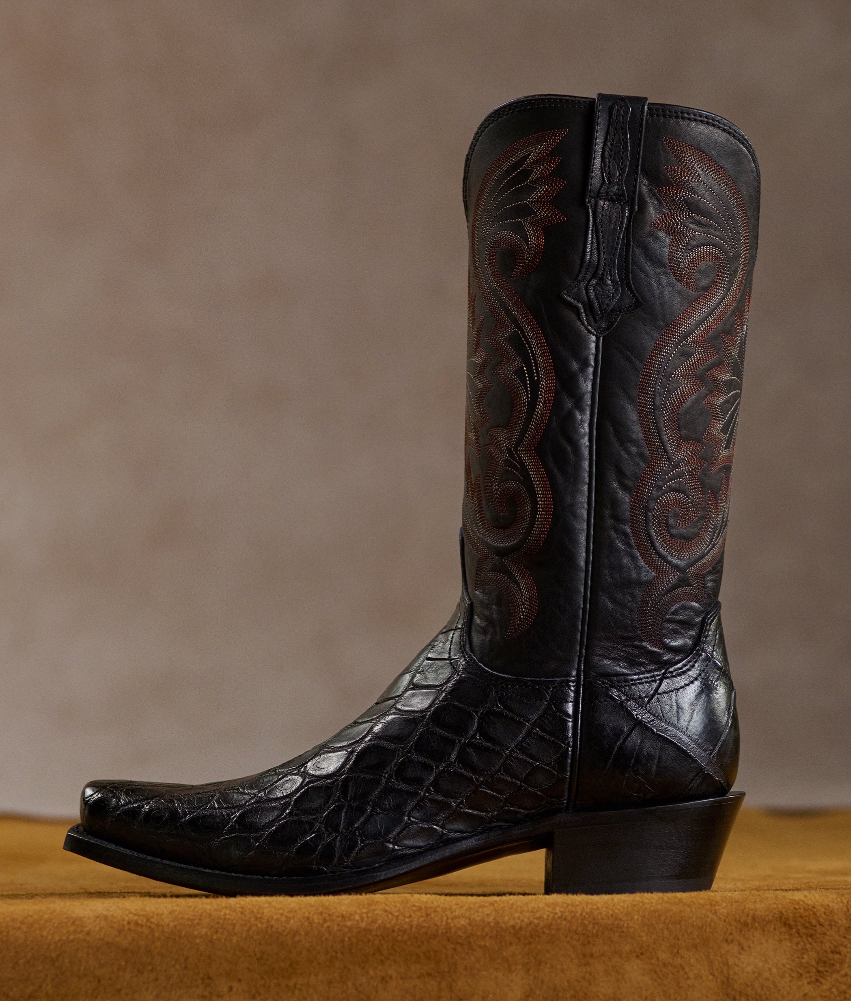 Fashioned from wild-caught Giant Alligator leather, this cowboy silhouette resembles the Rio Grande Valley and its mark left on the West - untamed, unforgiving, and unapologetic. The Rio will leave a Lone Star State-sized footprint on anyone who sports this rugged style. Handmade in Texas.