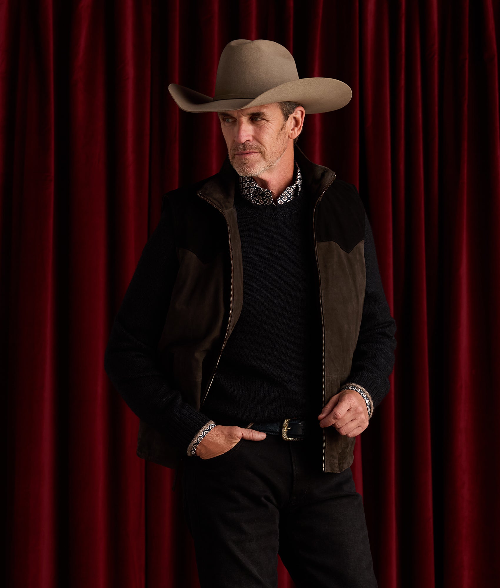 The Rit Two-Tone Vest is a tribute to the untamed West, crafted from rich, genuine leather in shades of deep brown and wild green that echo the desert’s raw beauty. With its striking Western yoke and functional side pockets, it blends bold style with rugged practicality, designed to withstand any journey.
