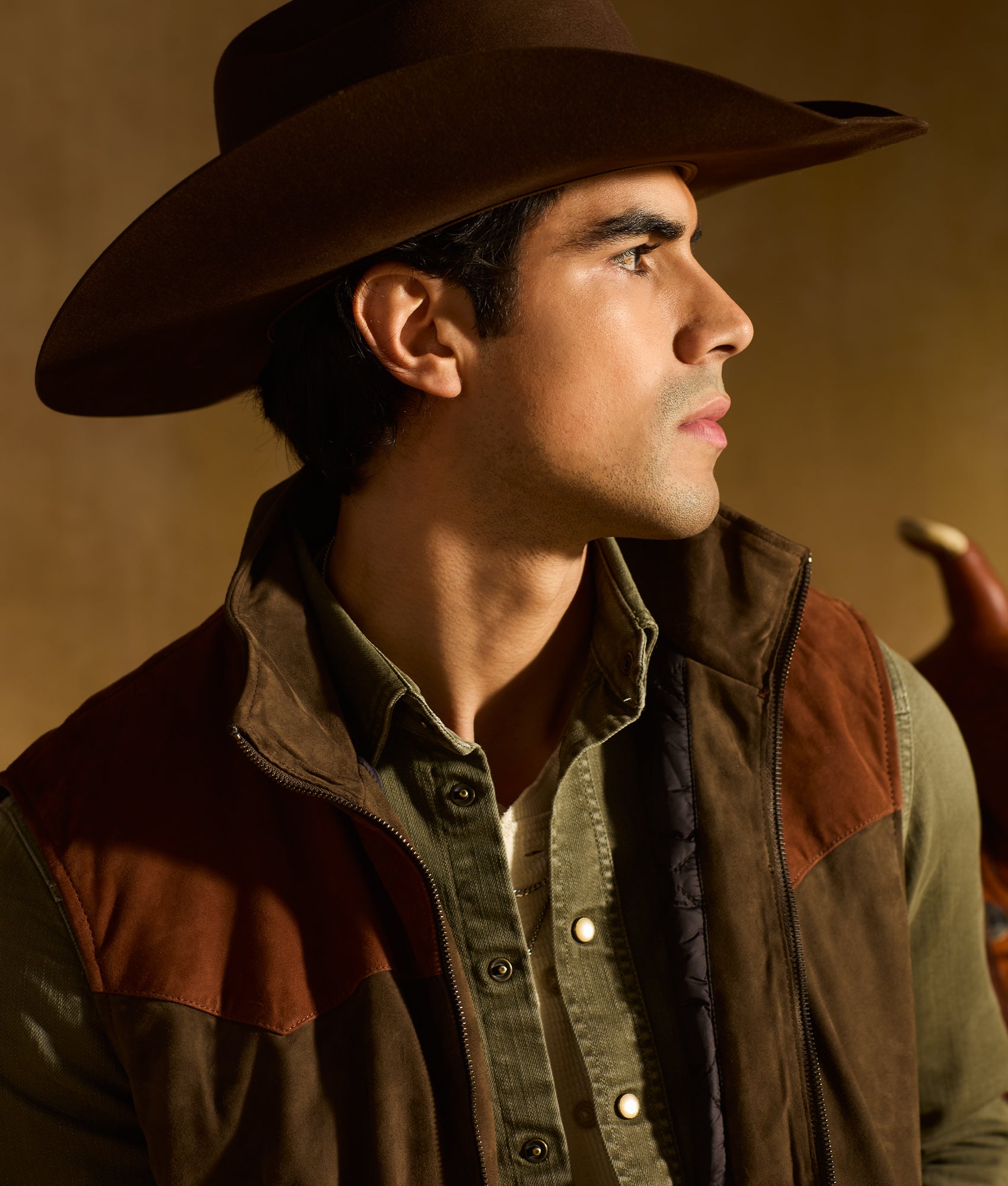 - Earth-toned denim