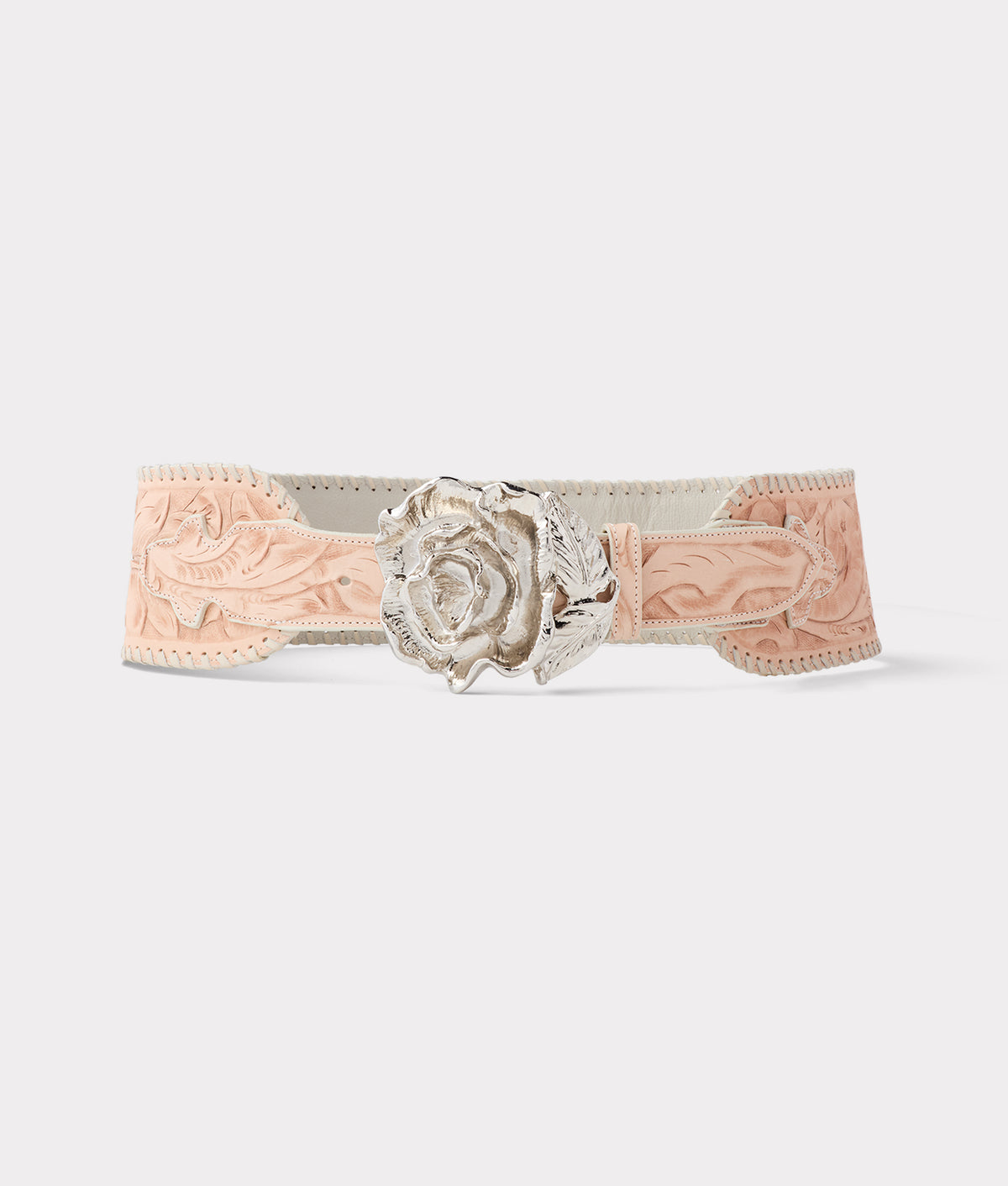 Crafted from hand-tooled Vachetta leather and lined with soft Italian Nappa, The Rose Buckle Belt is all about the details. The contoured shape hugs just right, while the whipstitched edge...