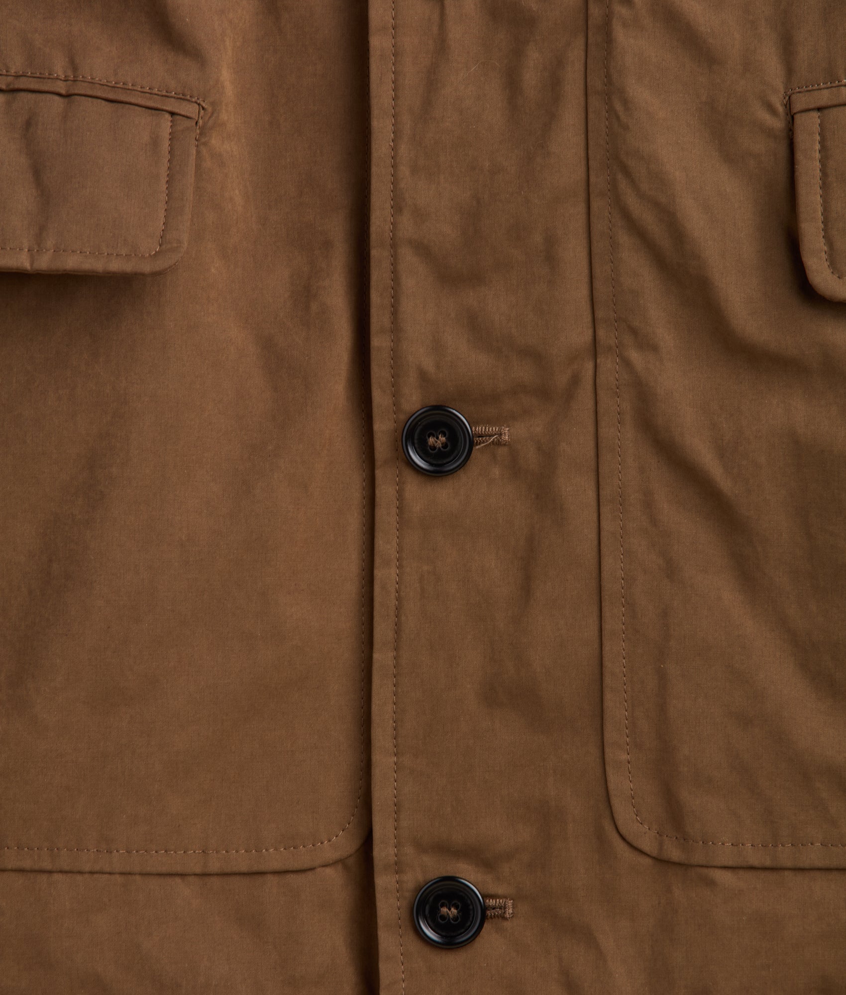 The William Jacket effortlessly blends heritage tailoring with modern utility. Crafted in Italy from a durable and balanced fabric blend, this jacket offers both structure and lightweight performance, making it ideal for transitional weather. Its clean, tailored silhouette is punctuated by a rich contrast collar in dark suede-like fabric, lending a sophisticated nod to traditional fieldwear. Flap pockets provide subtle functionality, while the button-front closure keeps the look minimal yet purposeful.